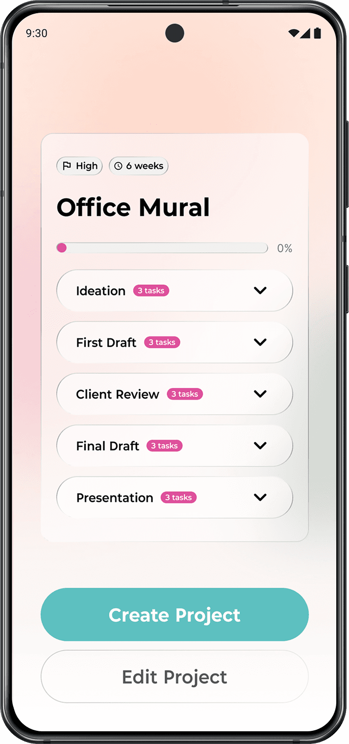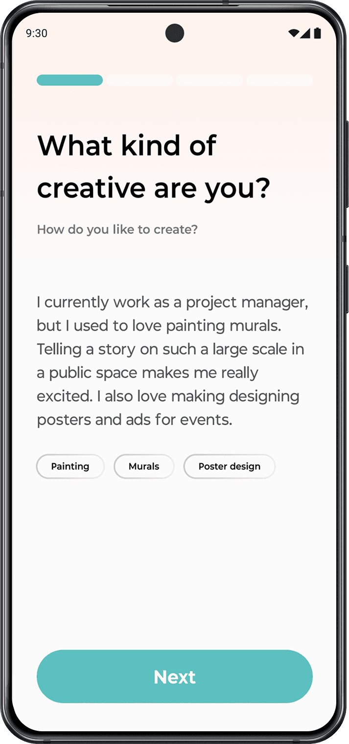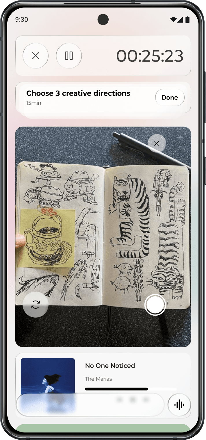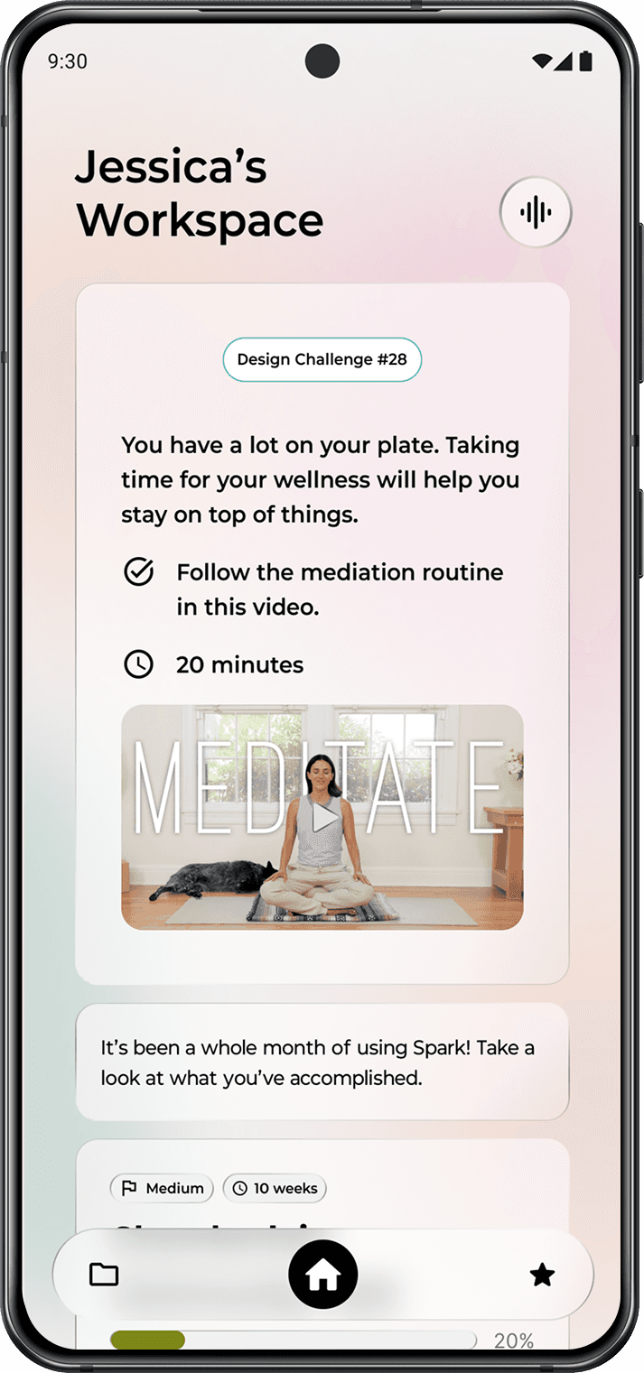 A personalized AI partner that guides creatives through their process and keeps track of their progress.