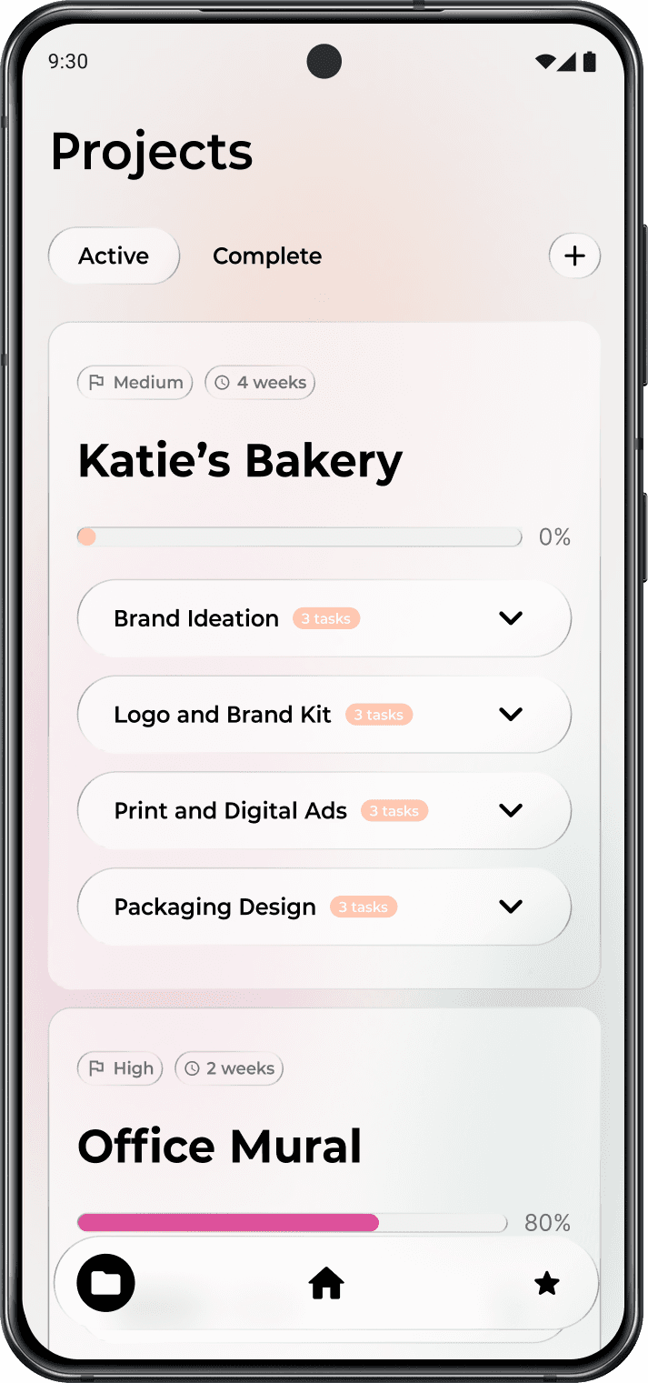 After several rounds of ideating and refining, my design process led me to a final solution: an AI assisted workflow partner that helps users break big goals into approachable tasks so that they can accomplish their creative goals.