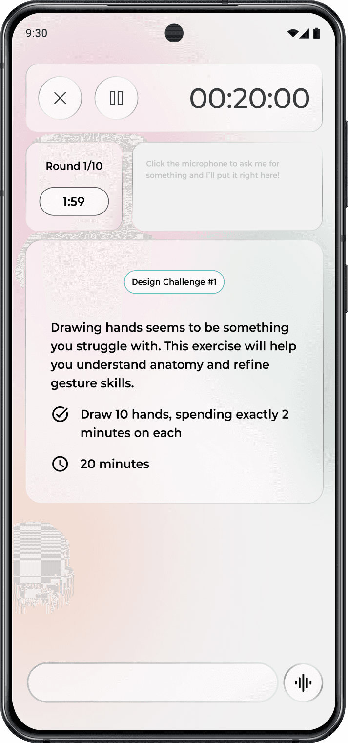 The Daily Challenge is a creative task related to your current progress and goals. These exercises help keep your skills sharp and your mind inspired, preventing burnout and frustration.