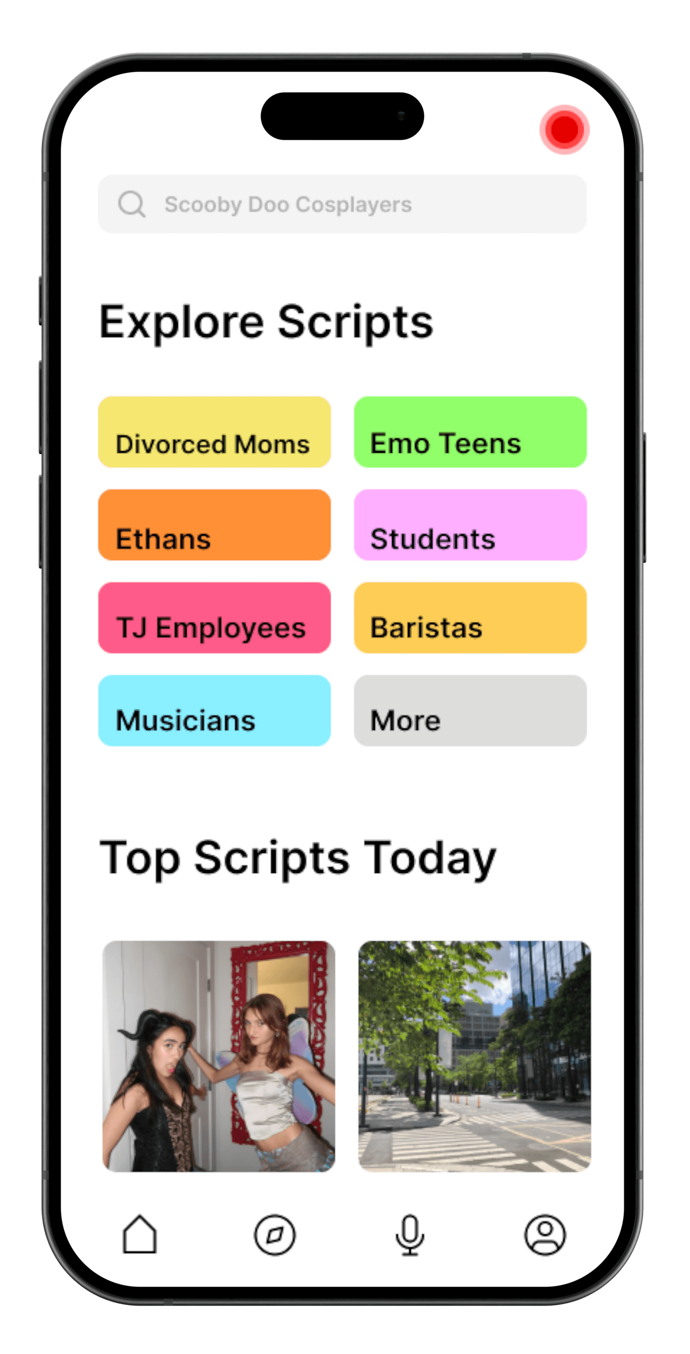 Script is a speculative social media mega-app that imagines a future where modern addiction to sharing has become an epidemic. Users are continuously recorded throughout the day, and their recordings are uploaded as podcasts. With access to archives of millions of users, Script challenges viewers to confront the consequences of oversharing in a world where cancel culture, misinformation, and hate speech become inescapable parts of everyday life.